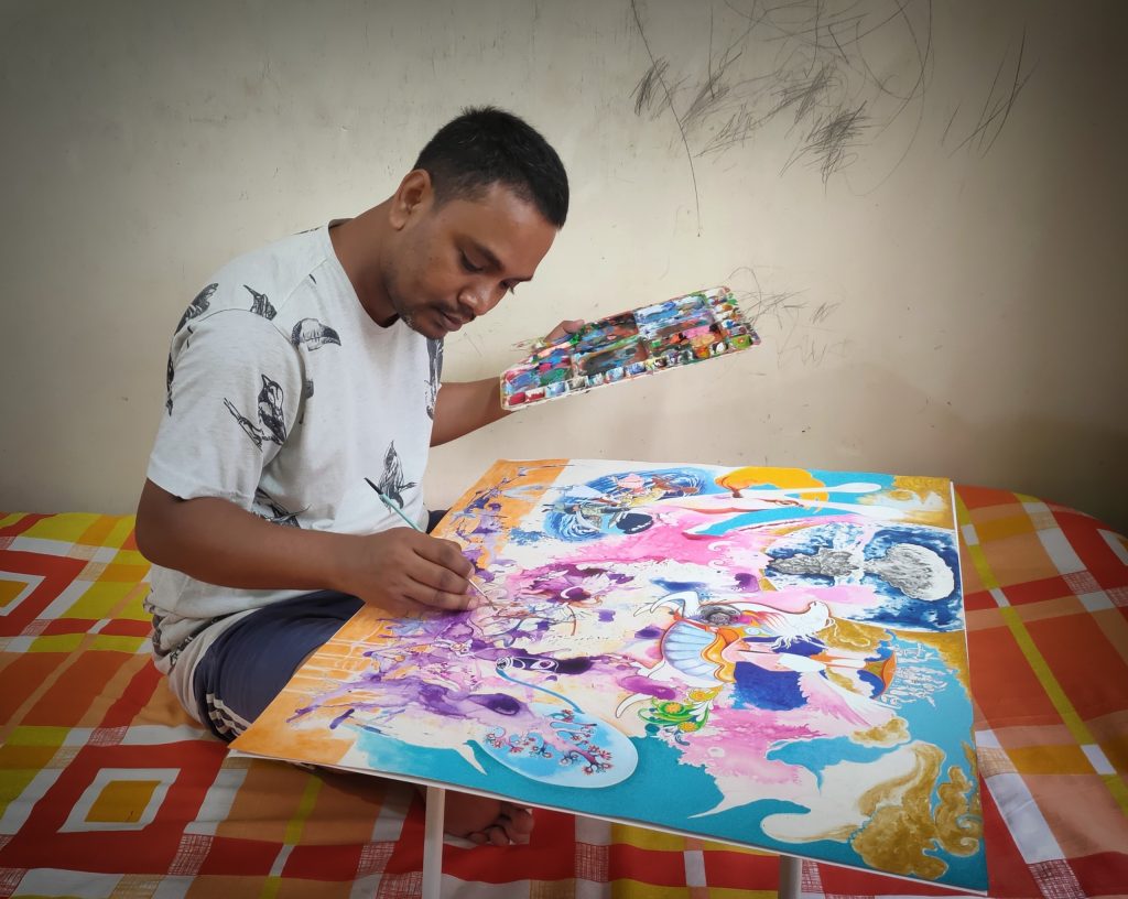 I’ve received awards like the Golden Artist Award (2021) and National Junior Artist Award (2008). My artworks are in collections in India and abroad, including Mauritius Tourism Promotion Authority and Gauhati University.